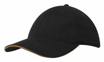 4176 Coton Brossé avec bordure sandwich 6 panneaux structurés à profil surbaissé visière pré-courbée avec coton poly brossé en dessous courte courroie recouverte de tissu